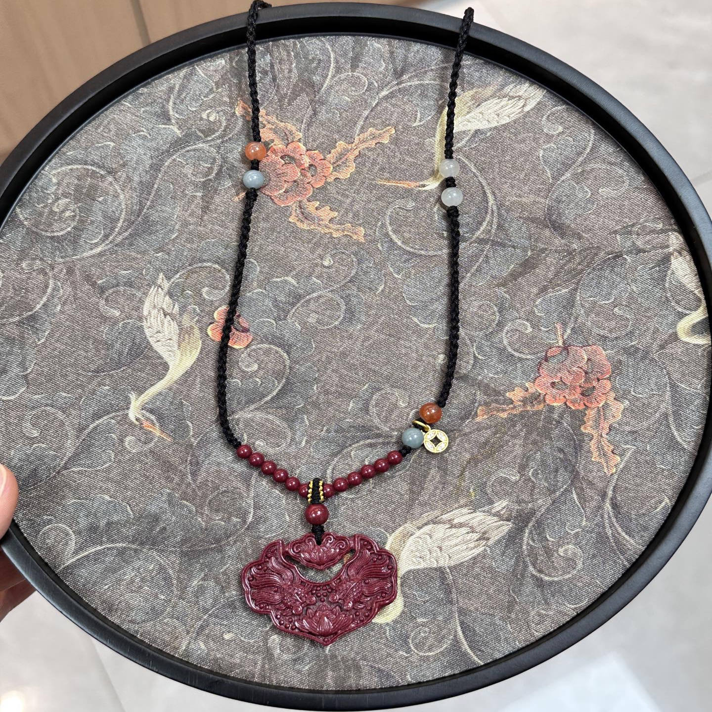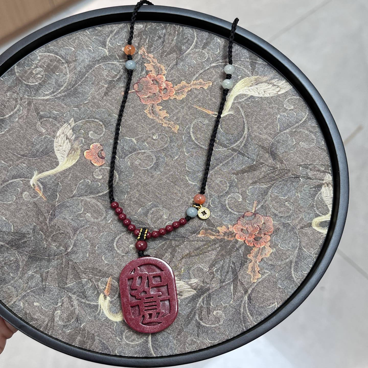 天然朱砂吊坠帝王砂绿度母凤凰牌锦鲤如意牌挂件帝王砂本命年项链