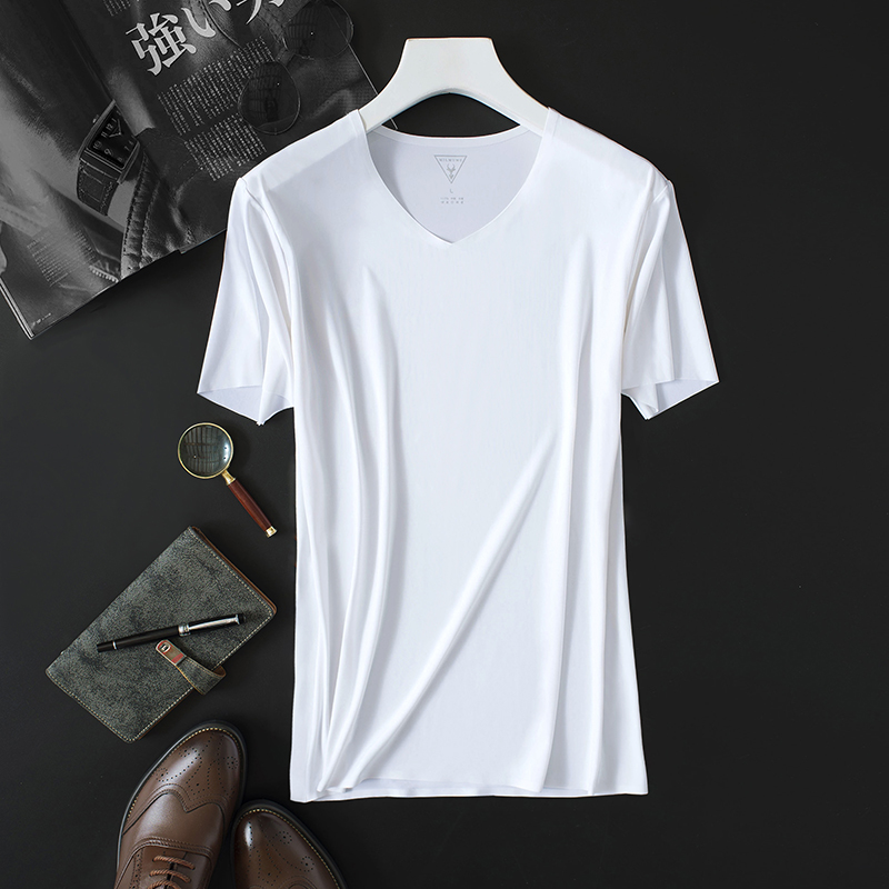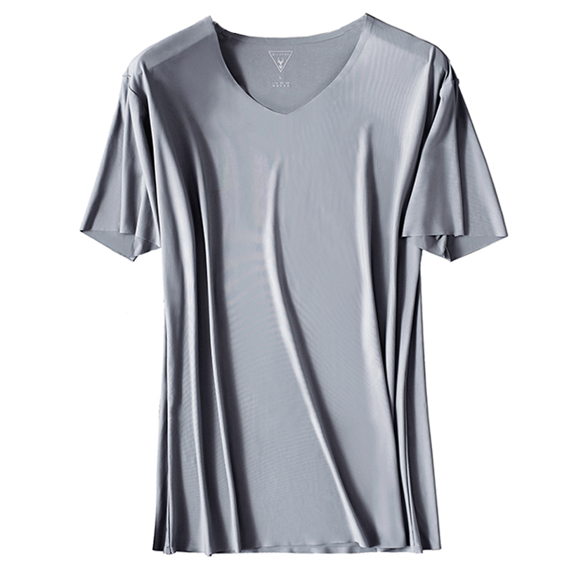 2件MILMUMU芈木男士羊奶丝T恤无痕短袖运动速干冰丝夏薄款大码V领