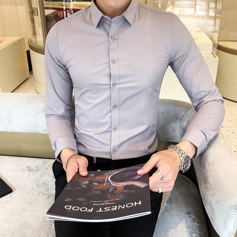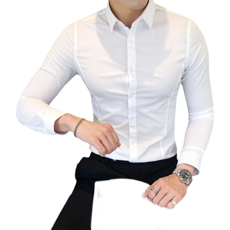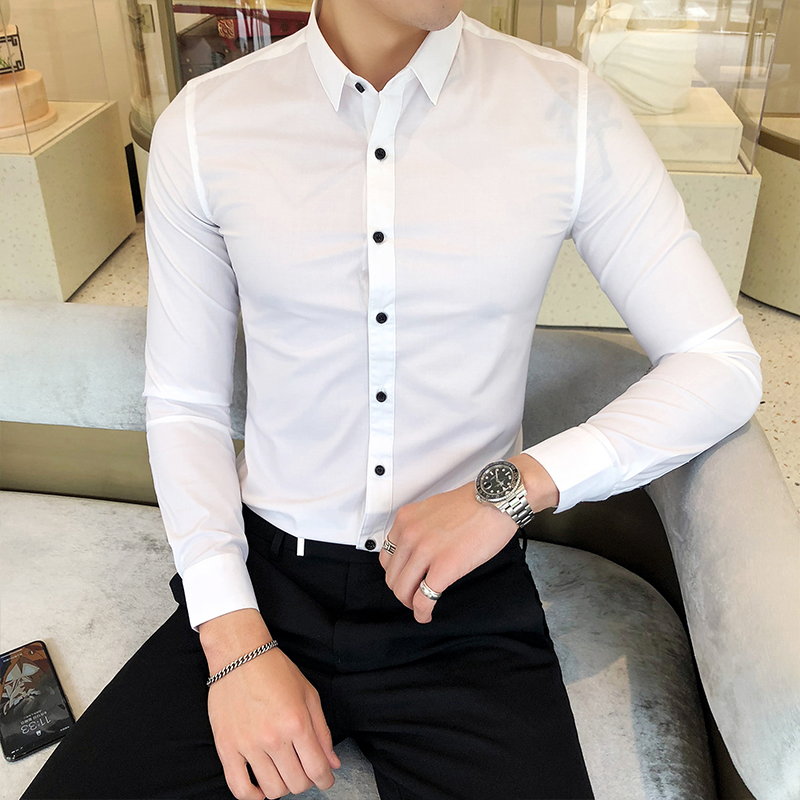白色衬衫男长袖修身韩版春季男士休闲潮流商务免烫帅气百搭衬衣