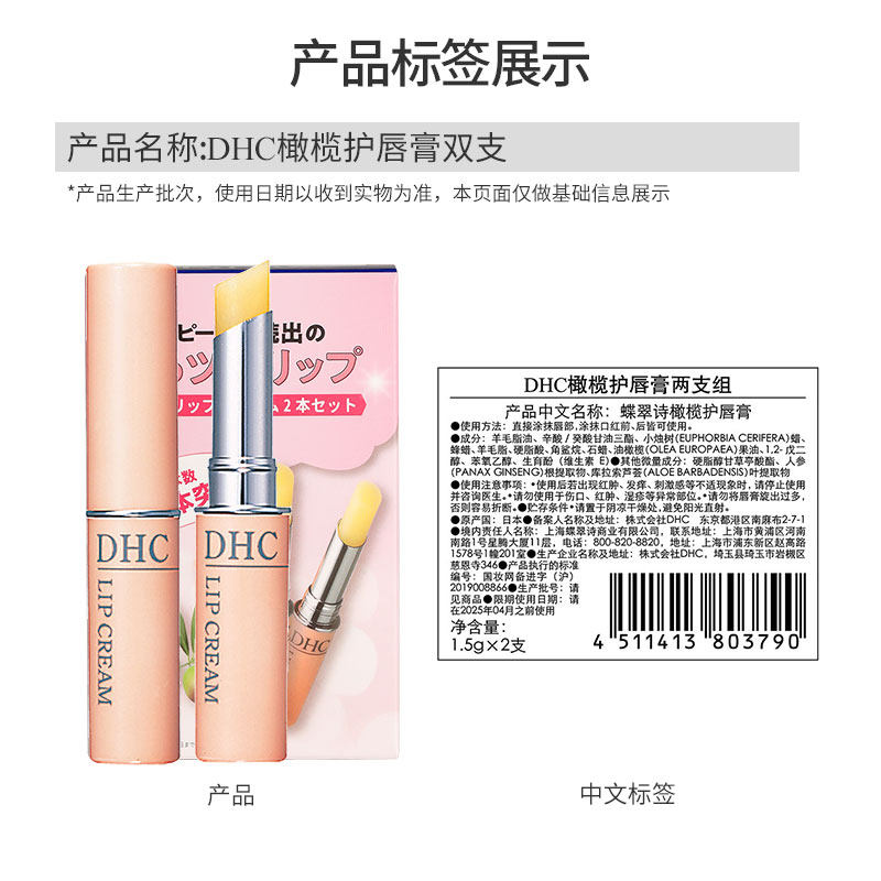 DHC橄榄护唇膏两支组(礼盒装)1.5g*2防干裂润唇膏保湿滋润补水