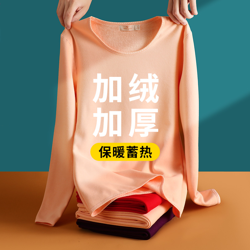 七匹狼女士加绒加厚保暖内衣套装秋冬季打底秋衣上衣中老年人妈妈