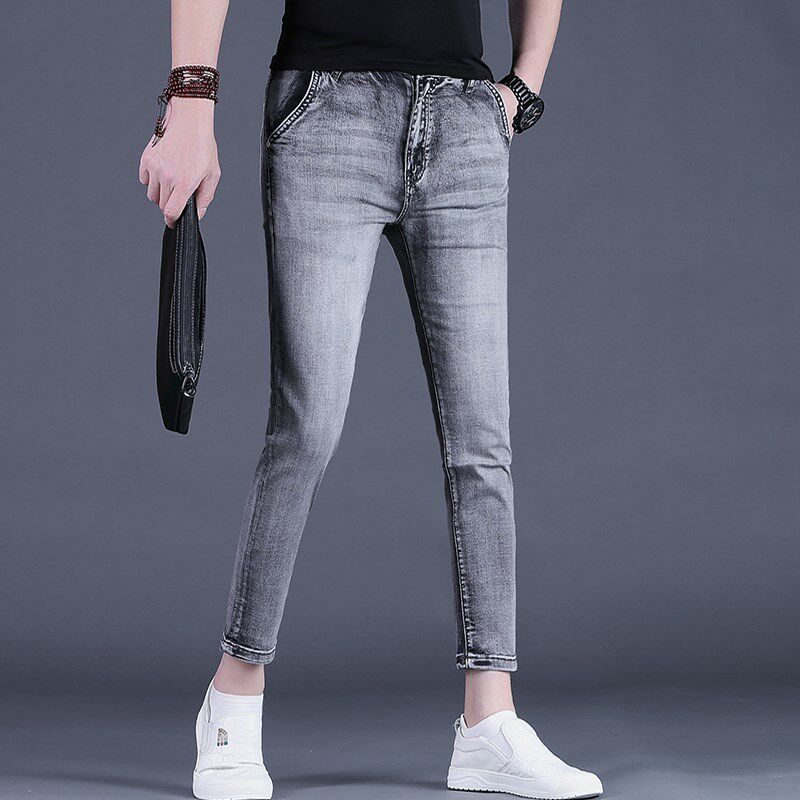 九分裤男夏季牛仔裤男士弹力潮流修身小脚薄款9分休闲裤子24男裤