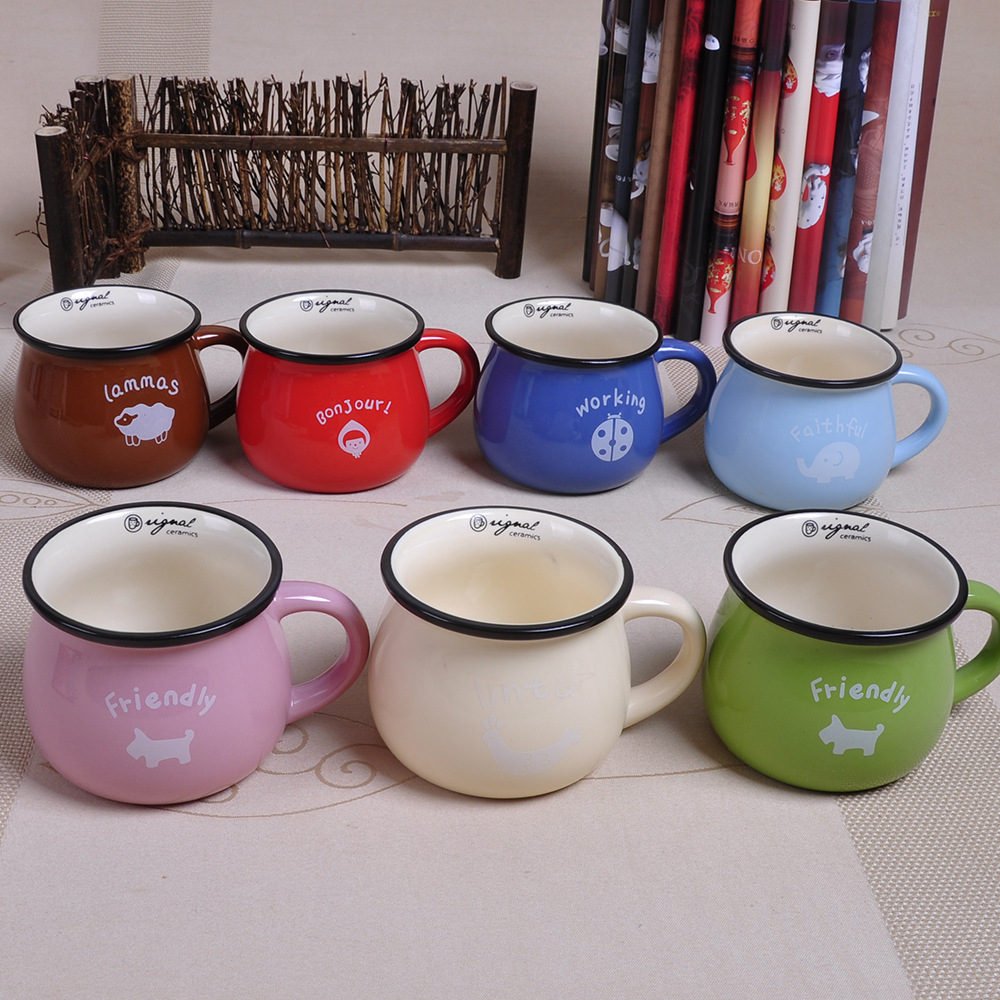 热销创意早餐奶杯 咖啡杯 大肚复古陶瓷杯 可爱马克杯杯子250ml