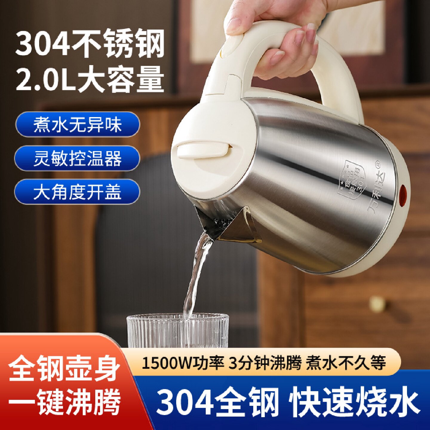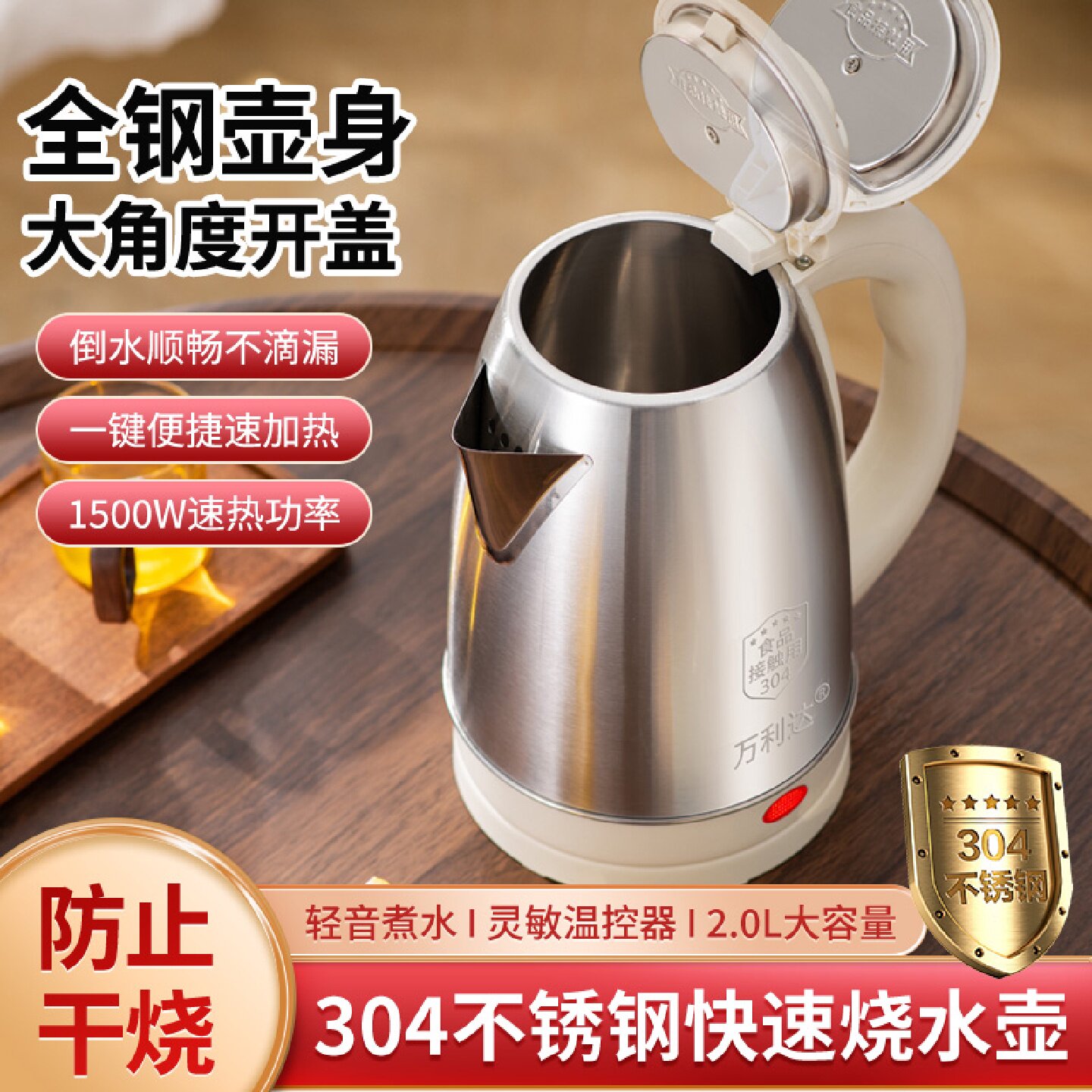 电热水壶电水壶不锈钢一体式保温自动断电开水壶家用学生自动断电