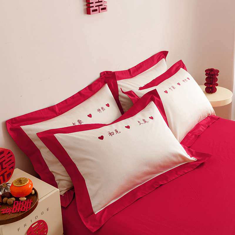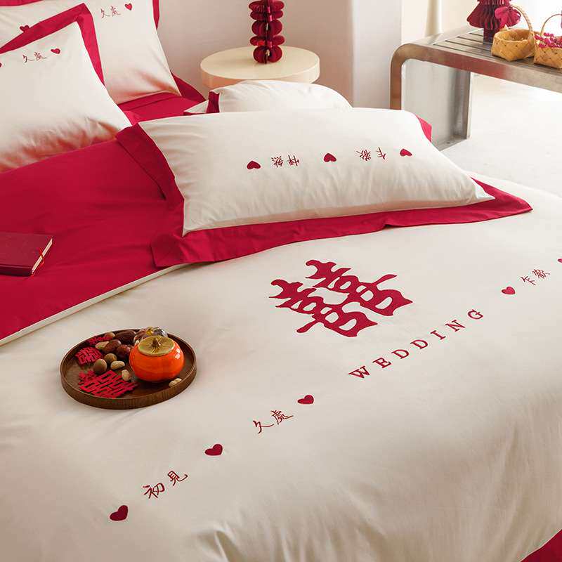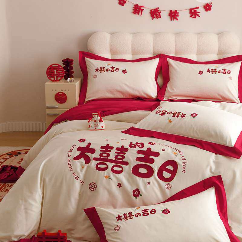 水洗棉婚庆四件套婚嫁新婚床品被套床单红色结婚女方陪嫁婚床品