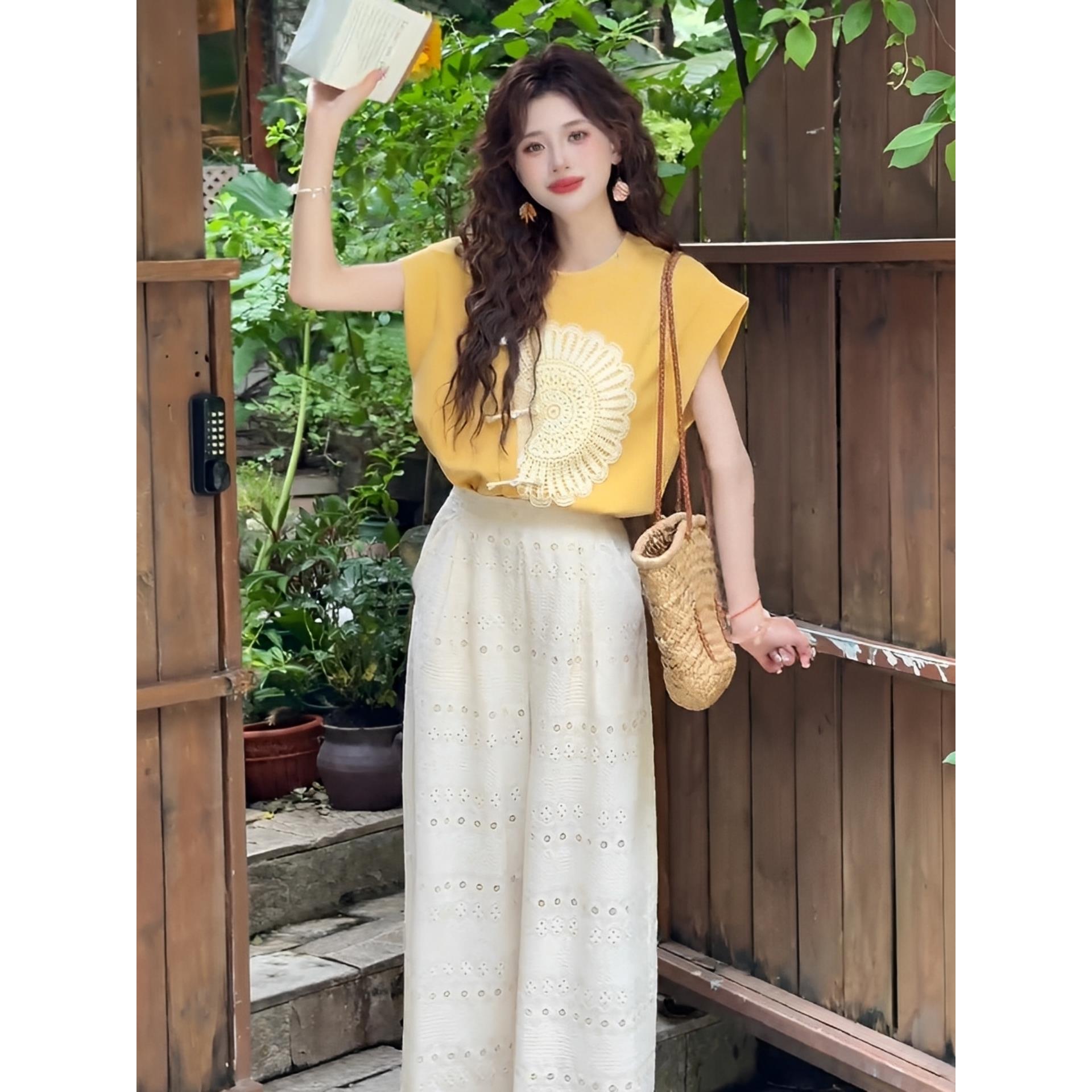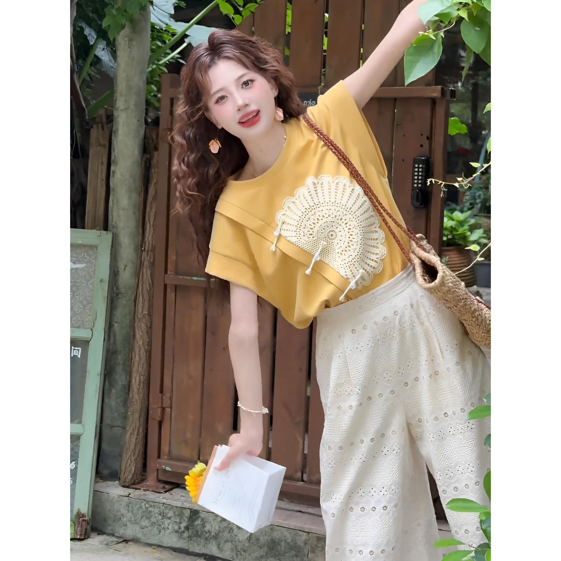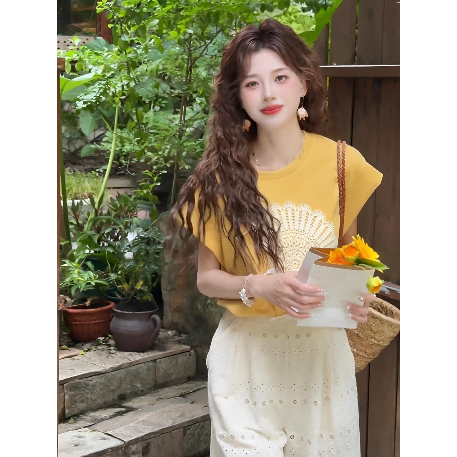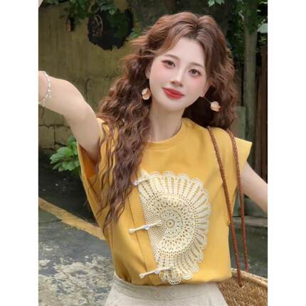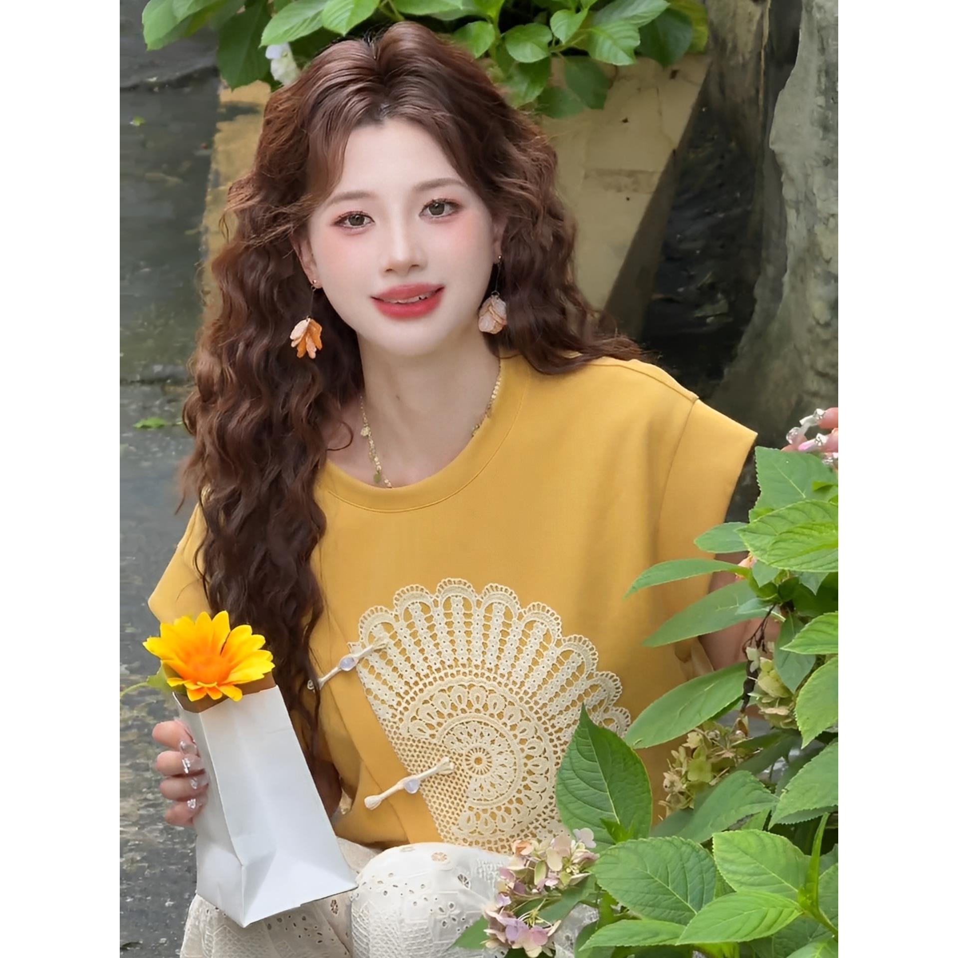 法式高级蕾丝边拼接独特小飞袖上衣夏季新款设计感小众短袖T恤女