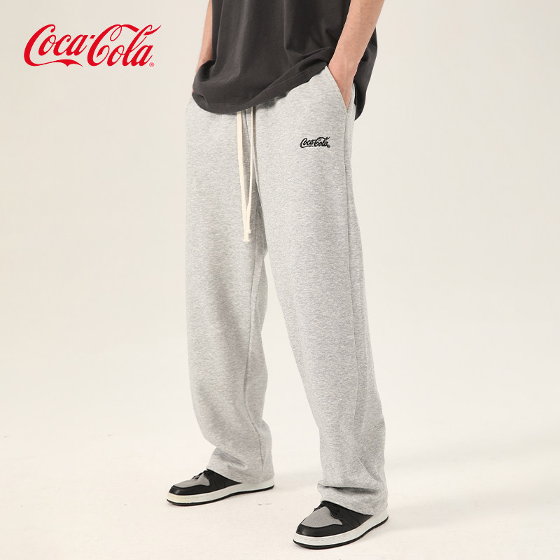 Coca-Cola/可口可乐 白色休闲裤男基础百搭加绒加厚运动直筒长裤