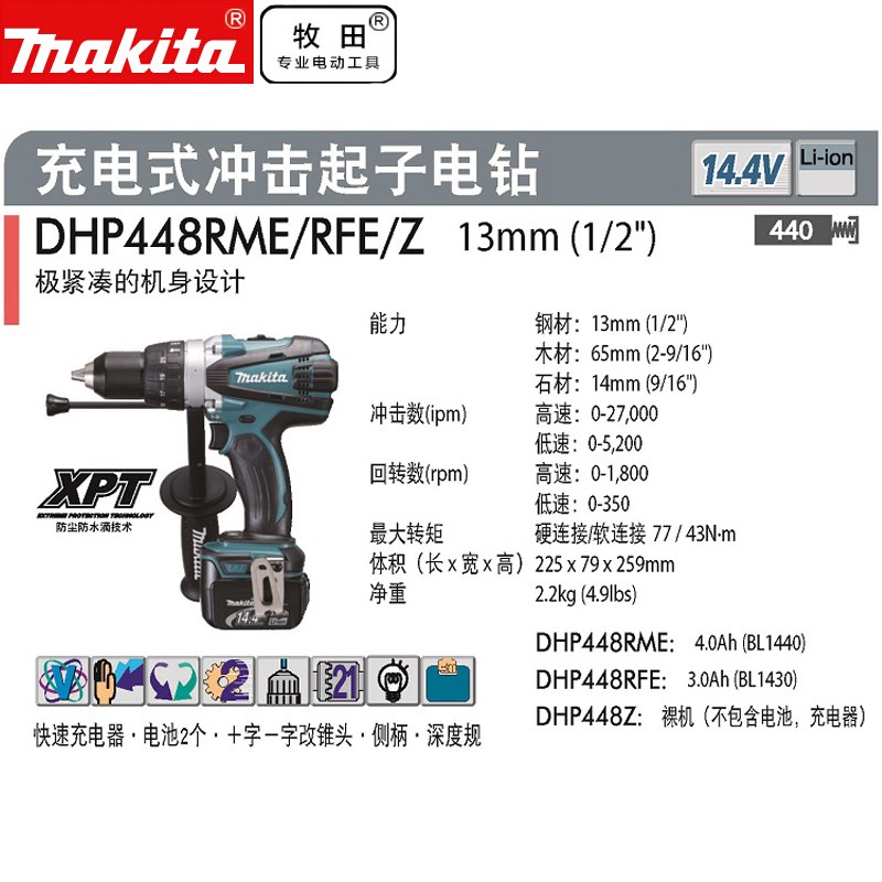 正品牧田Makita充电冲击起子机手电钻电动螺丝刀DHP448RME/RFE/Z
