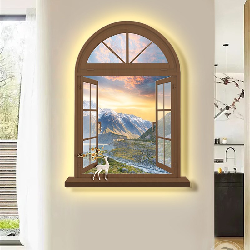 客厅墙面装饰画假窗户风景壁画级感LED发光灯画餐厅背景墙挂画