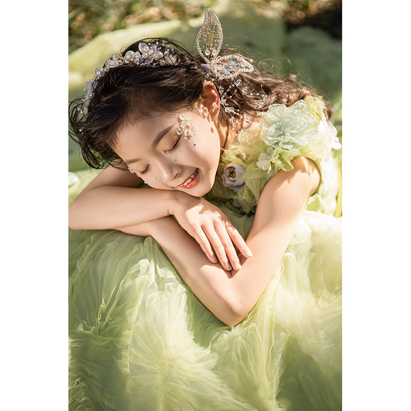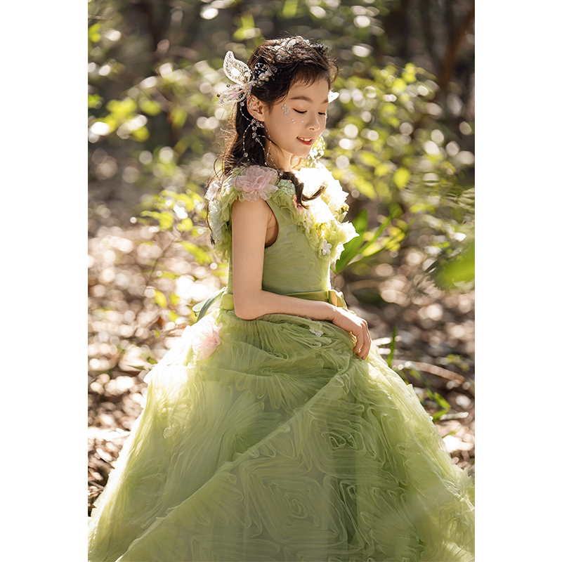 女童礼服绿色精灵公主裙森系气质女孩摄影写真演出走秀主持人长裙