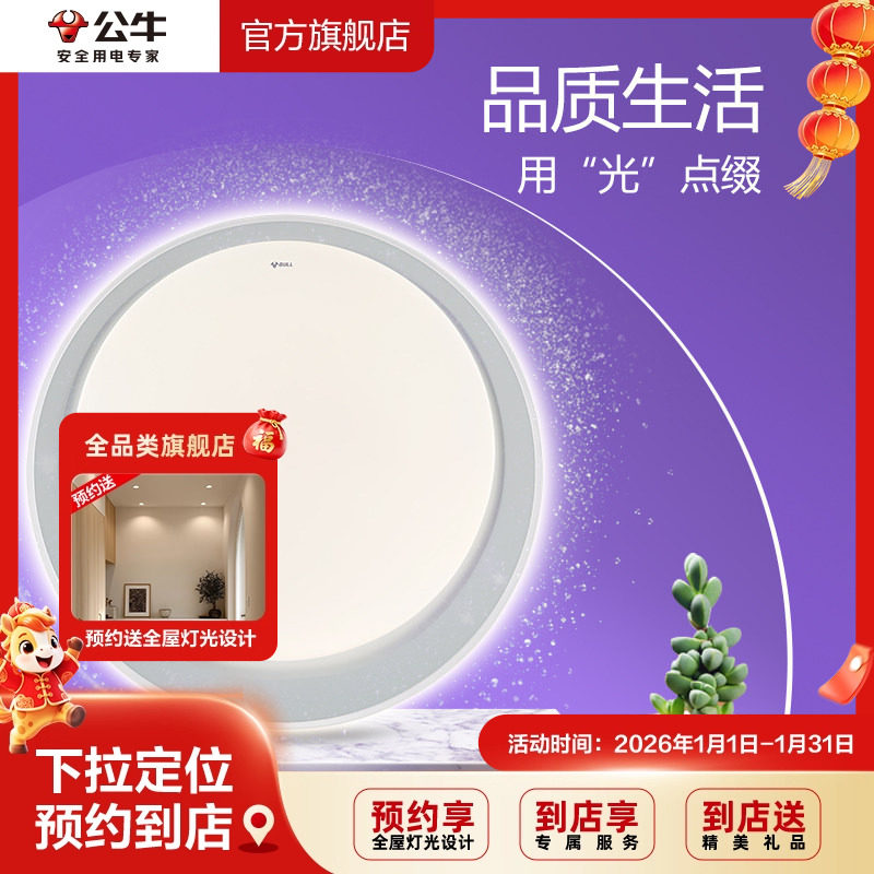 【门店同款】公牛卧室客厅餐厅简约灯吸顶灯三色变光LED灯M7