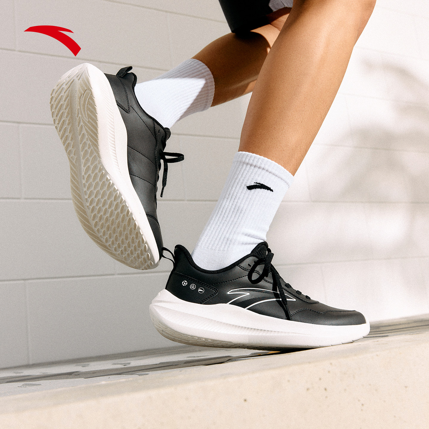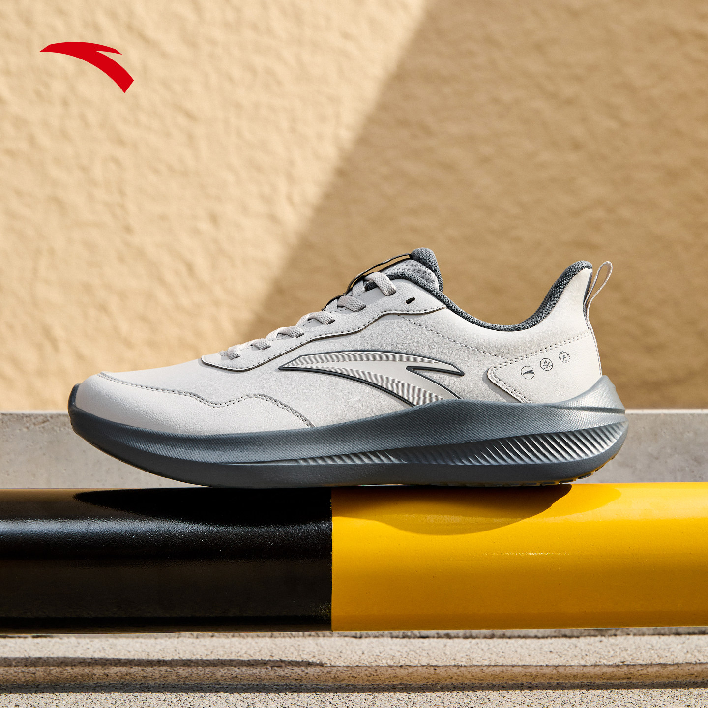 安踏晴空丨春季减震舒适男子皮面跑步鞋耐磨跑鞋轻便通勤运动鞋