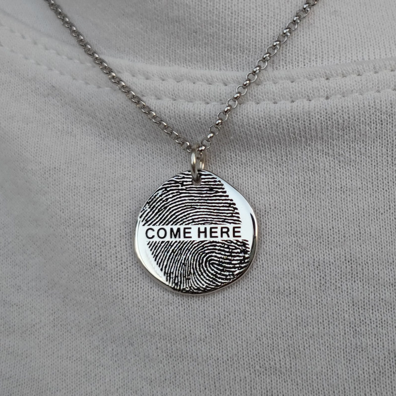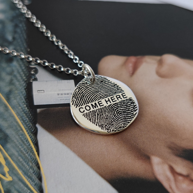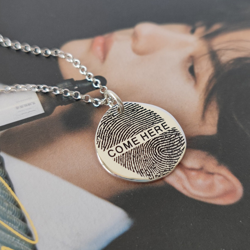 原创设计指纹项链定制一对男女款情侣情人节生日礼物个性刻字纯银