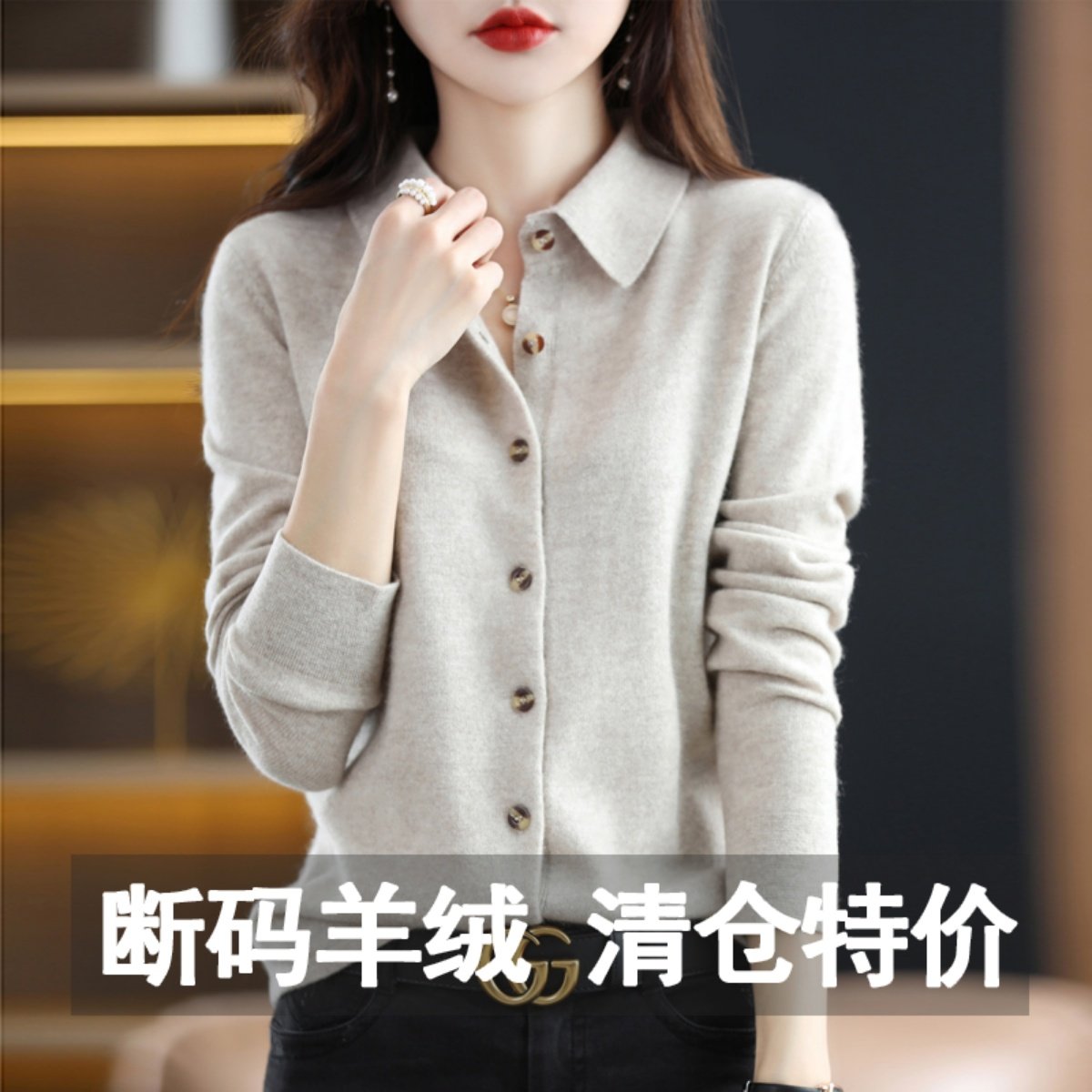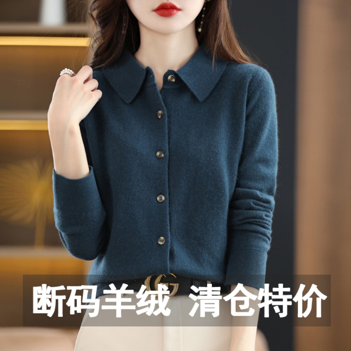 鄂尔多斯市羊绒开衫女秋季外搭宽松长袖毛衣翻领羊毛针织衬衣外套