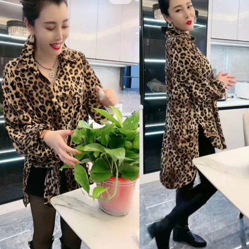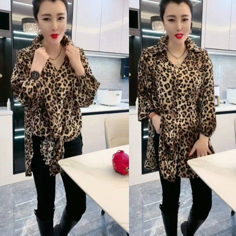 衬衫女2022新款洋气爆款女人味上档次网红大码豹纹衬衫百搭长袖衣