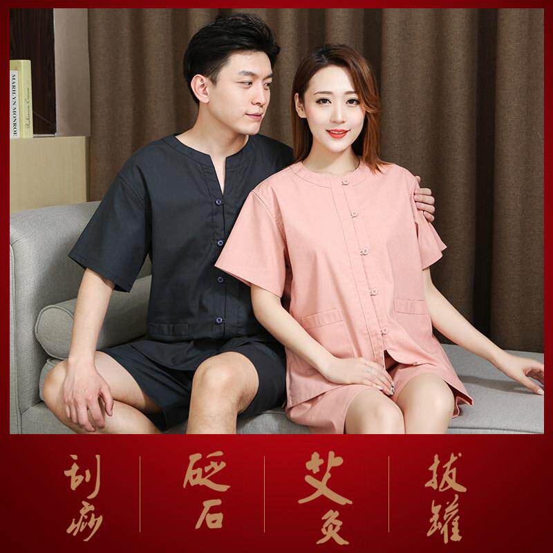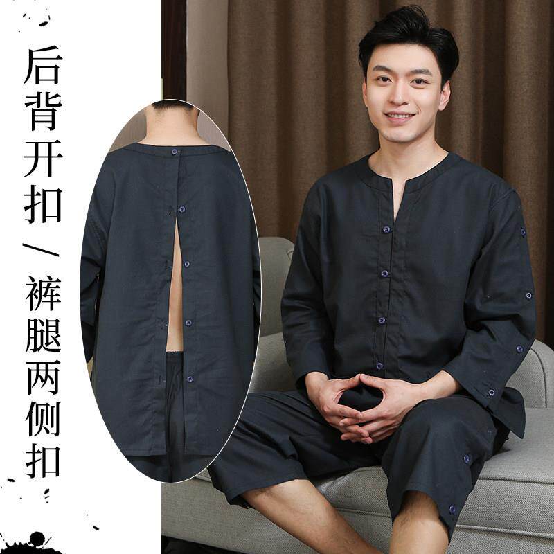 艾灸服男女前后开扣长袖开背肩部开扣艾灸衣家用理疗服拔罐针灸服