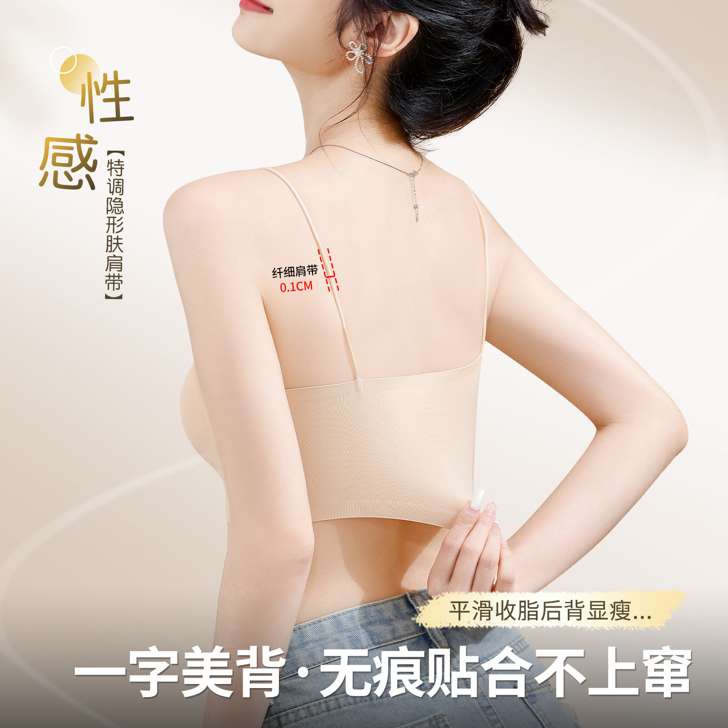 粉底液内衣女可外露细肩带美背背心一体式隐形抹胸内搭防走光文胸