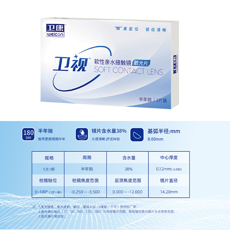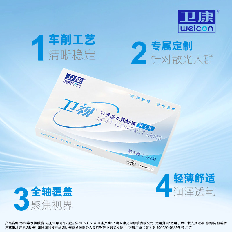 卫康卫视散光隐形眼镜半年抛轻薄近视高低度数专业定制 宝岛眼镜