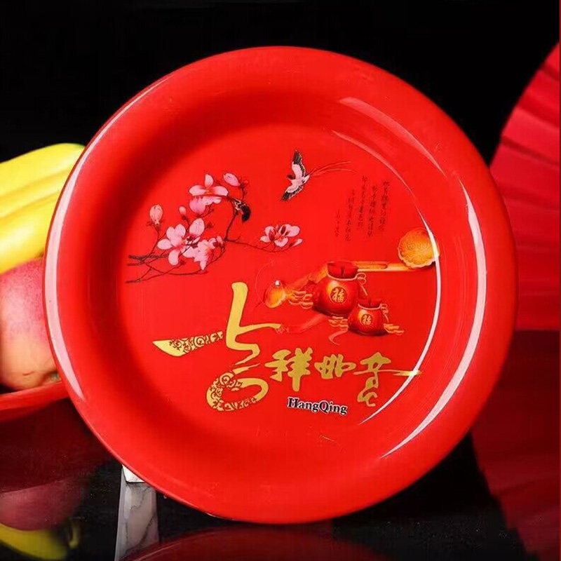 塑料中式喜庆红色加厚塑料红盘