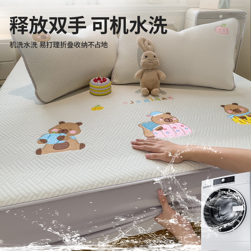 华夫格夹棉刺绣单床笠单件1.2m1.5m1.8m2.0*2.2床罩0.9枕套纯色
