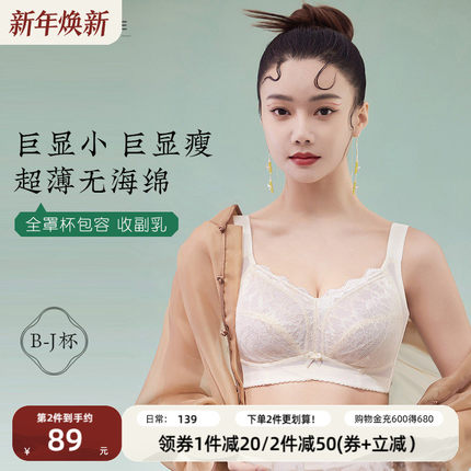 月色大胸显小文胸薄款女士胸罩全罩杯聚拢大码胖mm本命年红色内衣
