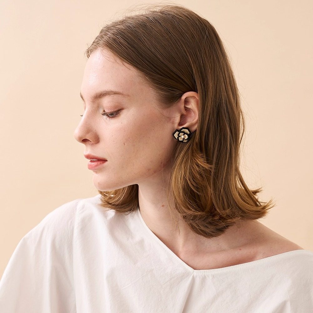 巴黎亚历山大耳钉山茶花耳钉