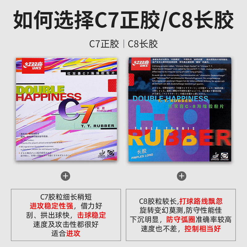 红双喜乒乓球长胶C7正胶C8长胶套胶单胶皮乒乓球拍颗粒胶皮进攻型