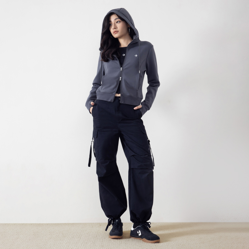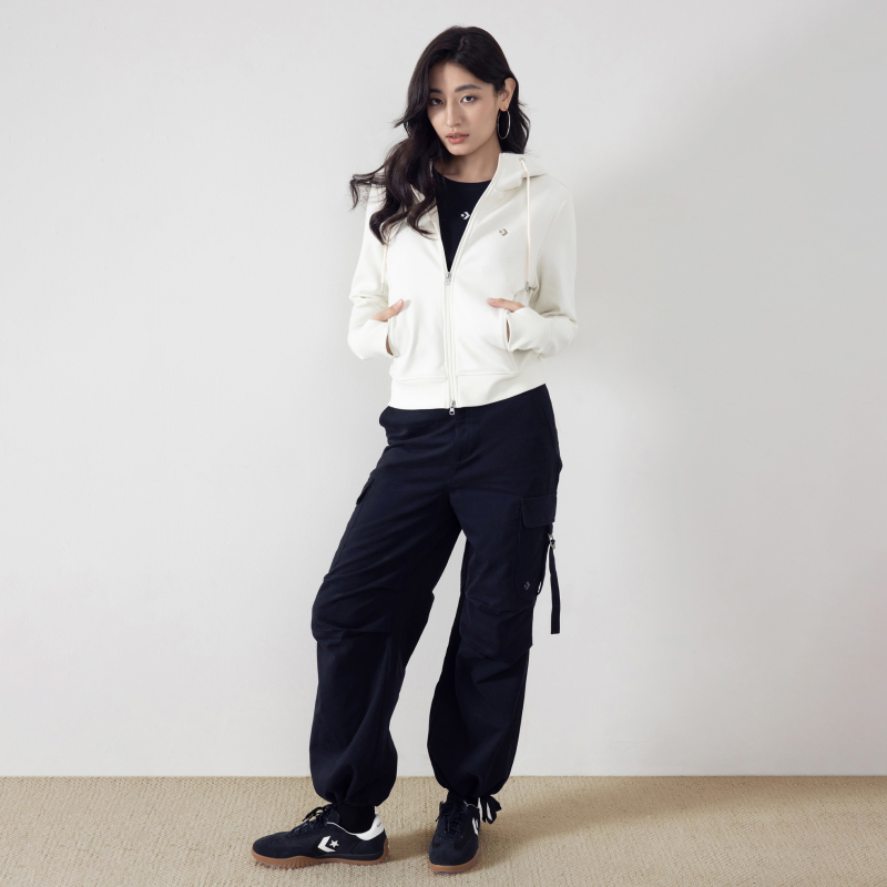 CONVERSE匡威官方 秋冬新品女短款卫衣外套双向拉链上衣WCJ132