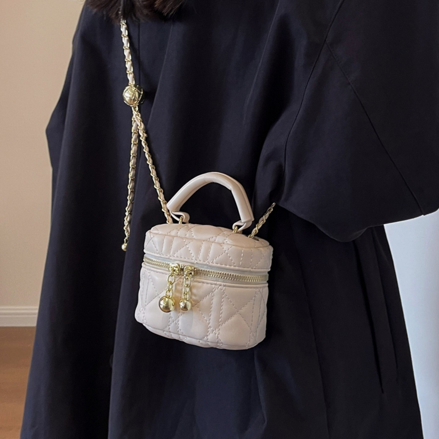 小香风菱格链条包女2026新款高级感百搭单肩斜挎包迷你手提水桶包