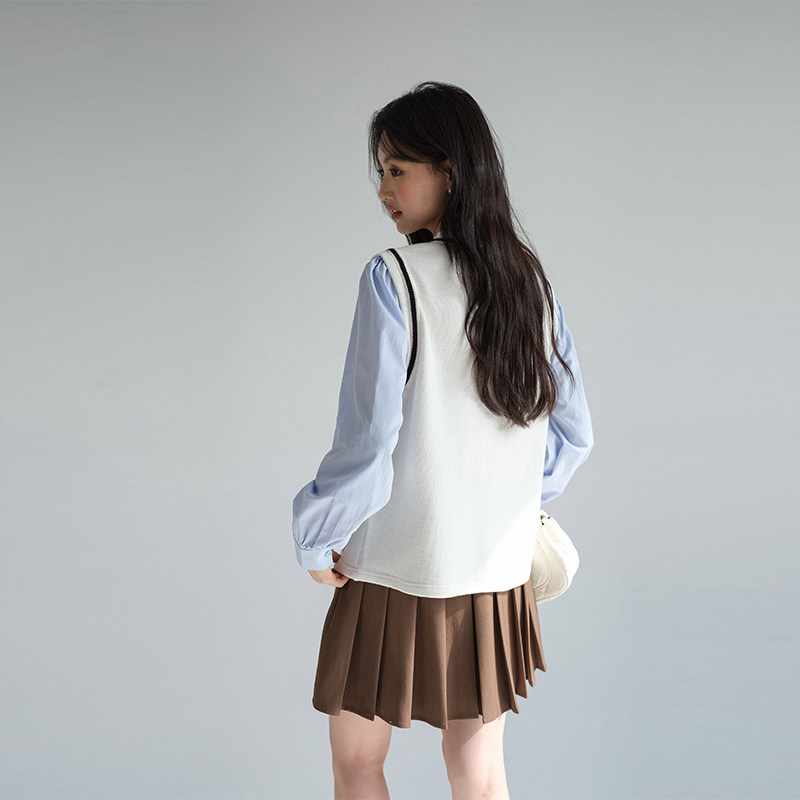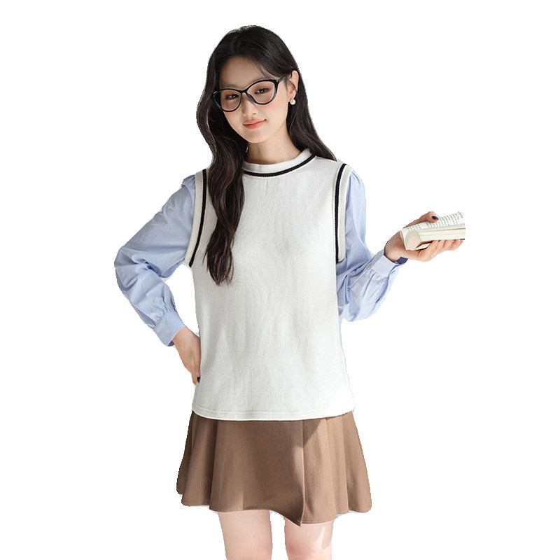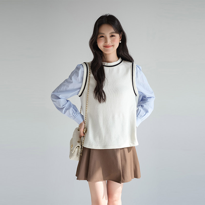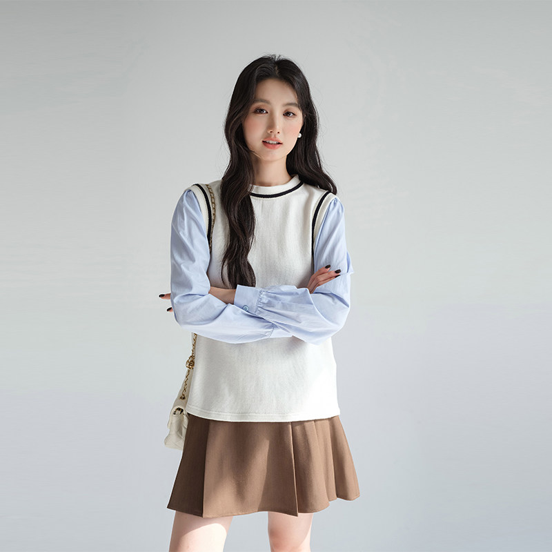 蓝若水假两件衬衫气质百搭上衣