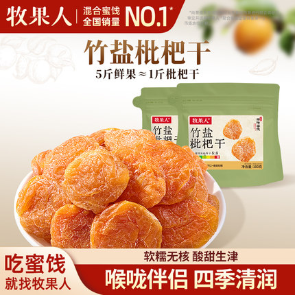 牧果人竹盐枇杷干100g蜜饯果脯果干无核正宗特产琵琶干休闲零食