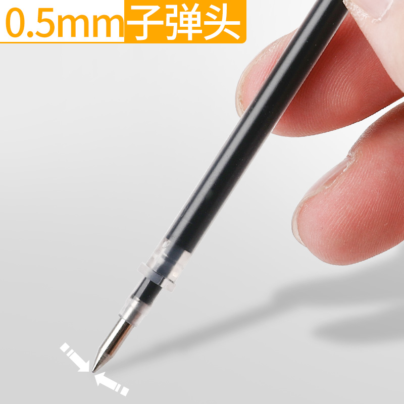 得力文具学生中性笔芯0.38子弹头水笔替芯全针管0.5黑红蓝色