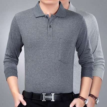2025新款纯色长袖t恤男装宽松中老年人休闲打底上衣男士翻领秋季