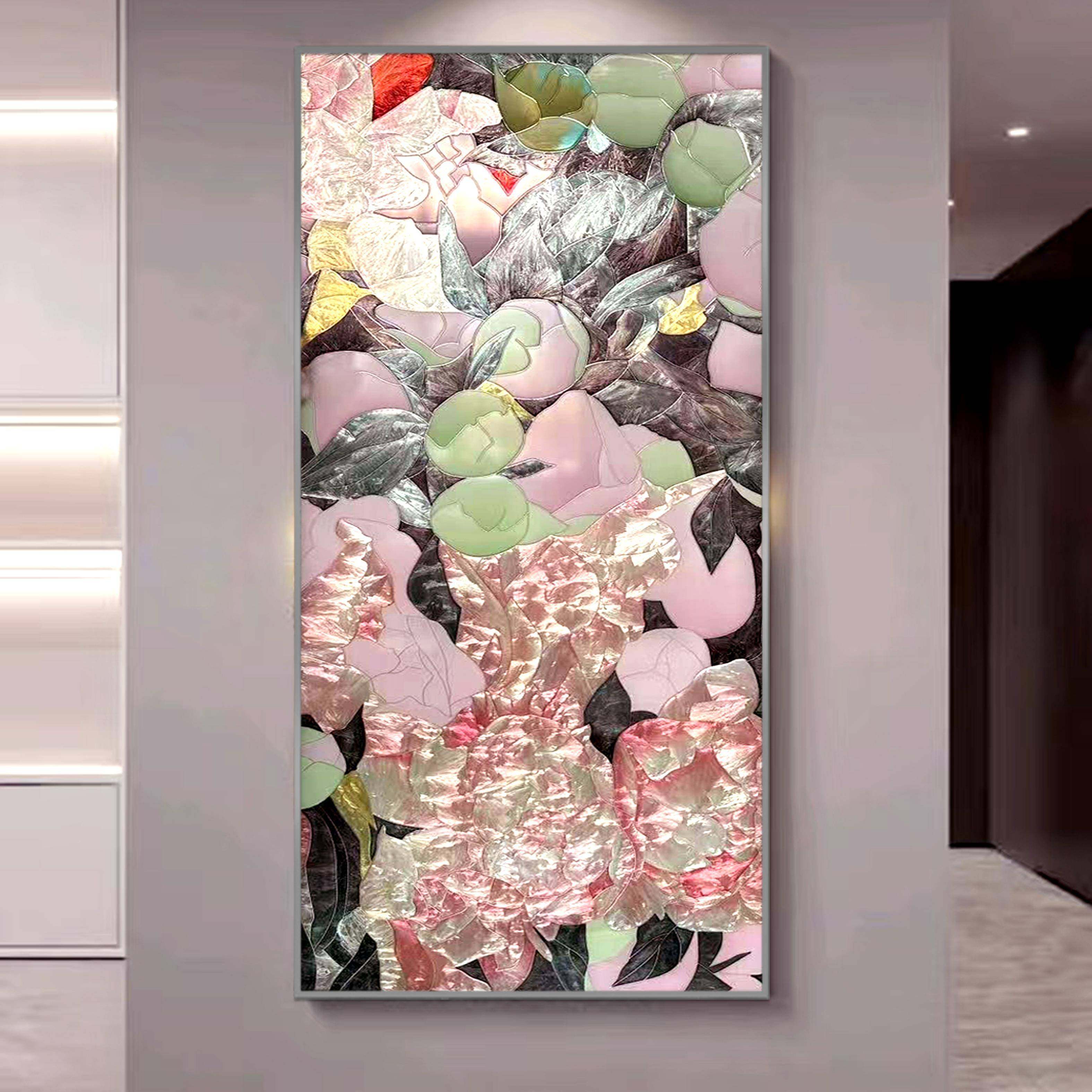 简欧沙发背景墙艺术画客厅挂画珐琅彩装饰画入户玄关抽象高端壁画