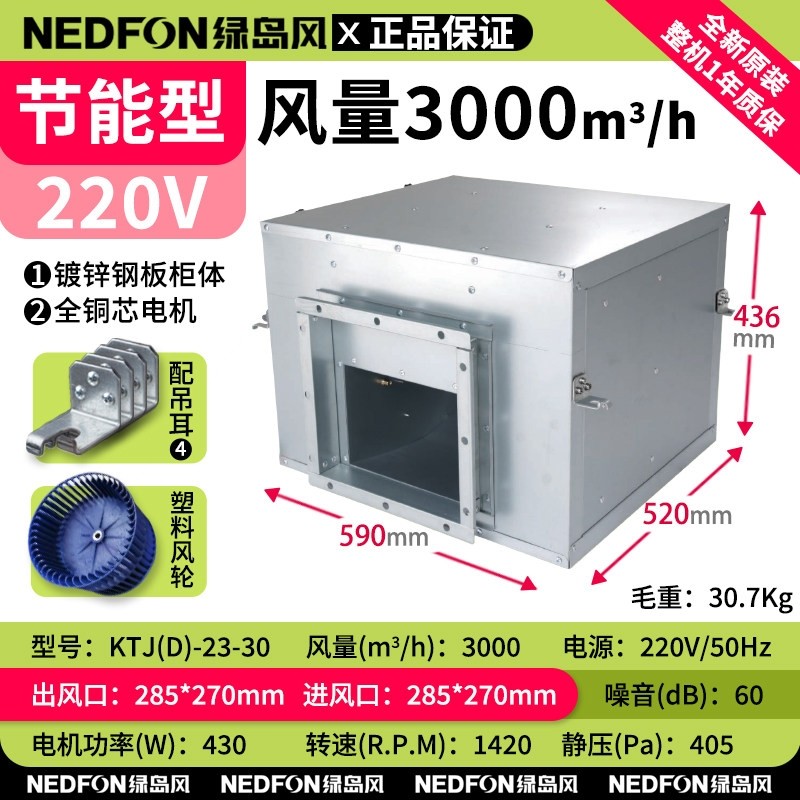 绿岛风空调风柜商用强力静音柜式机工业抽风机管道送排风机离心风