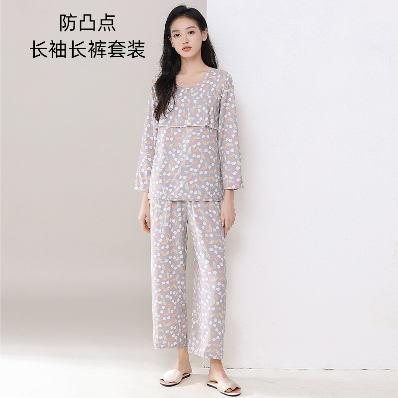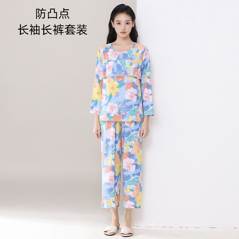 2024夏季新款女士防凸点棉绸睡衣套装长袖长裤居家睡衣舒适宽松