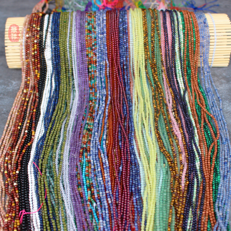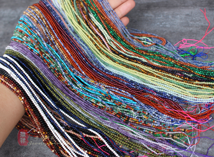 天然2mm小圆珠 玛瑙水晶粉紫晶红石蓝纹红纹虎眼天河石DIY散珠串