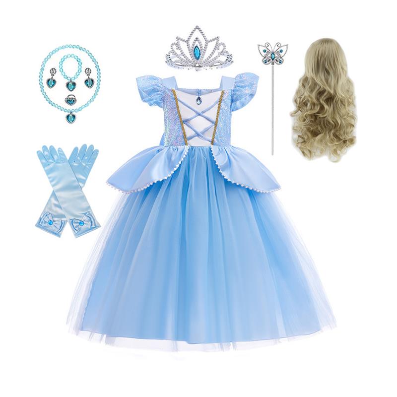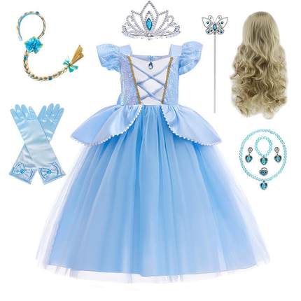 迪士尼童装女童仙蒂公主裙夏季蓬蓬纱裙子礼服裙短袖灰姑娘连衣裙