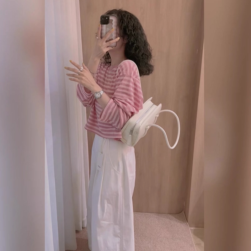 盐系减龄套装女2025年秋季新款条纹上衣搭配高腰阔腿休闲裤两件套