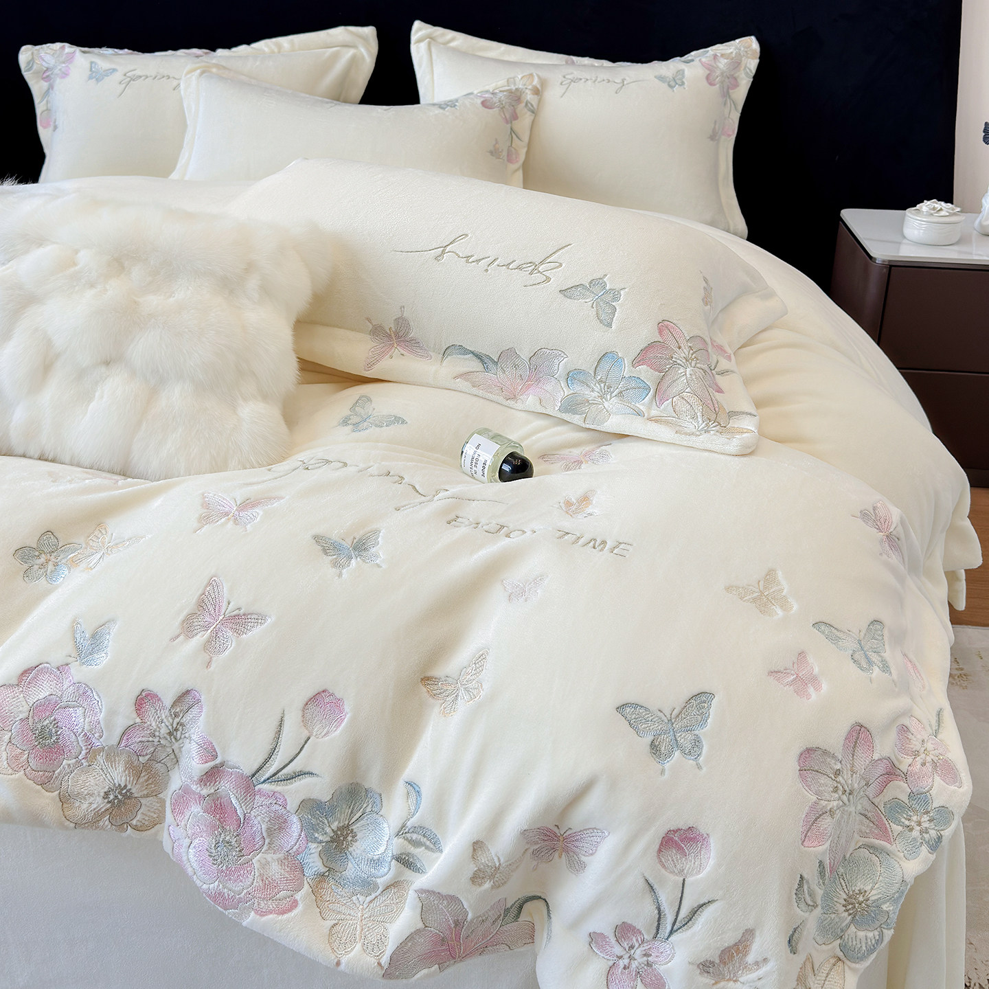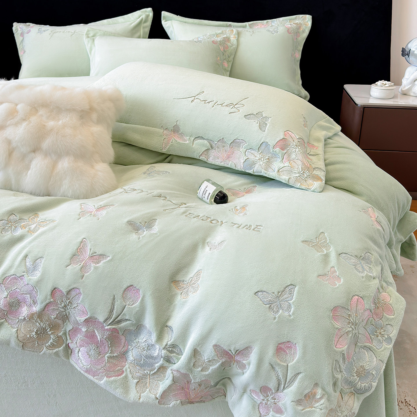 新款A类冬季加厚牛奶绒四件套保暖法兰绒被套床单床笠床上用品
