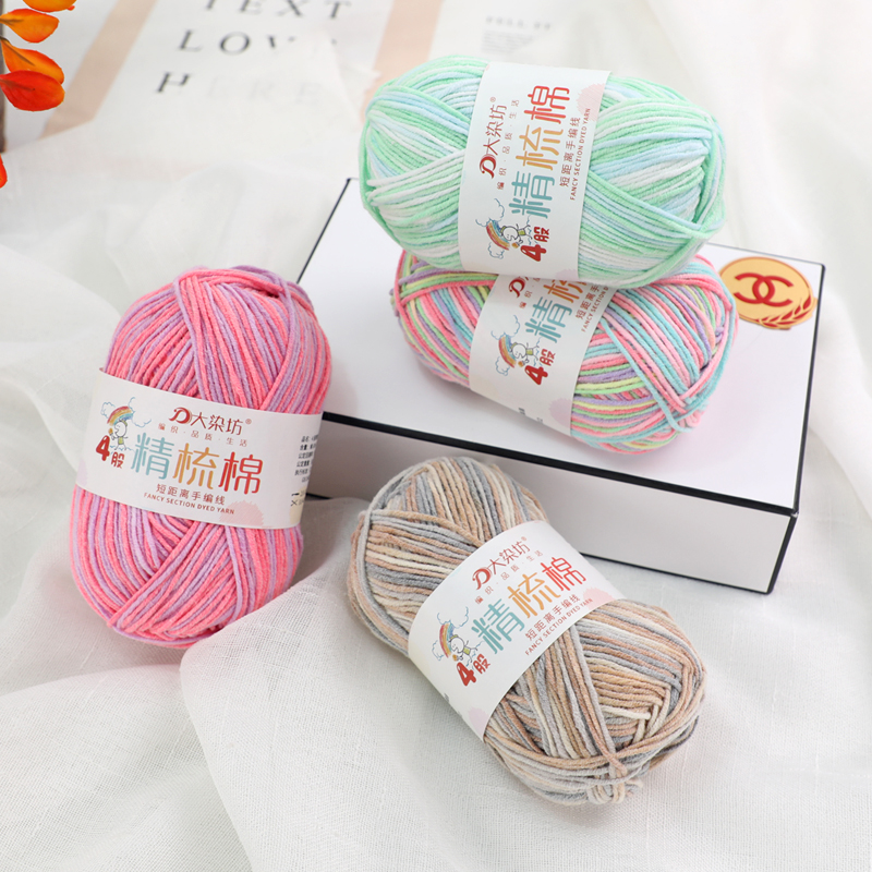 手染4股精梳棉线段染中粗毛线团手工编织diy织围巾帽子毛衣牛奶棉