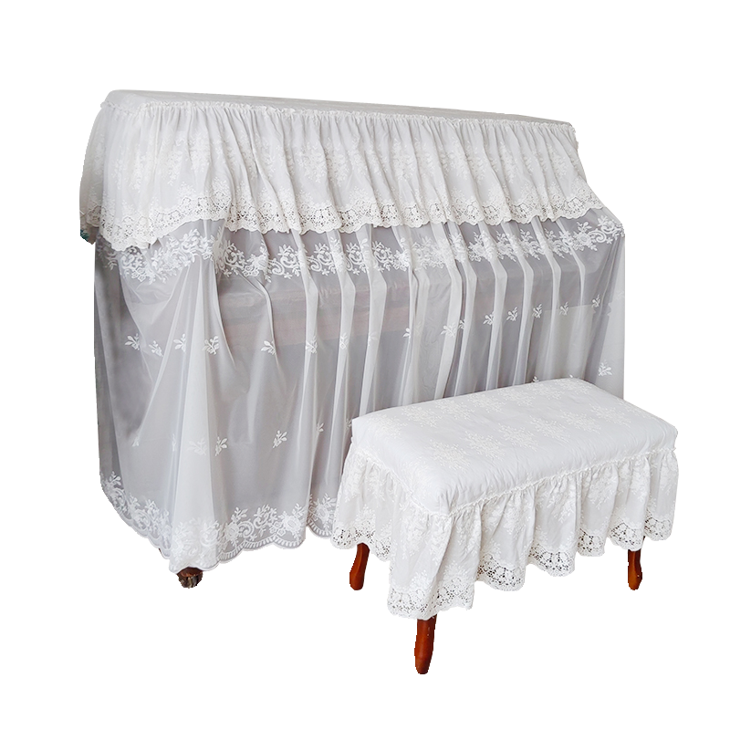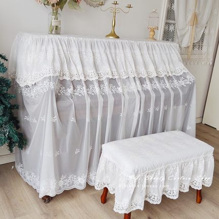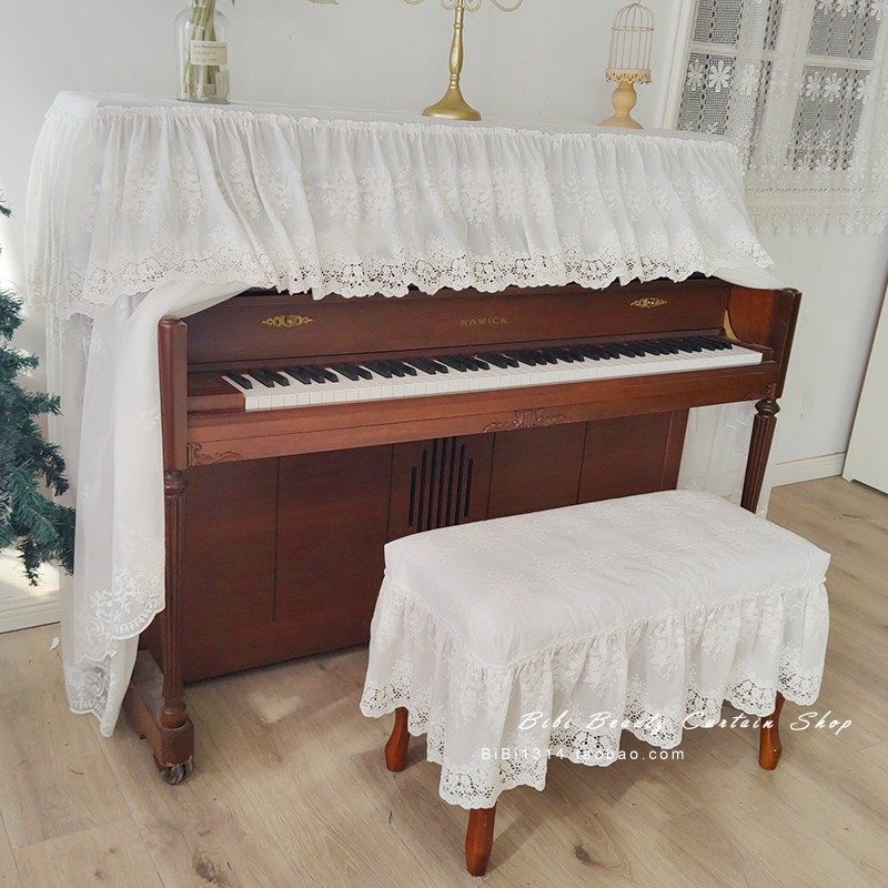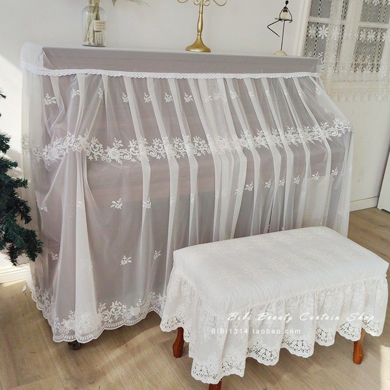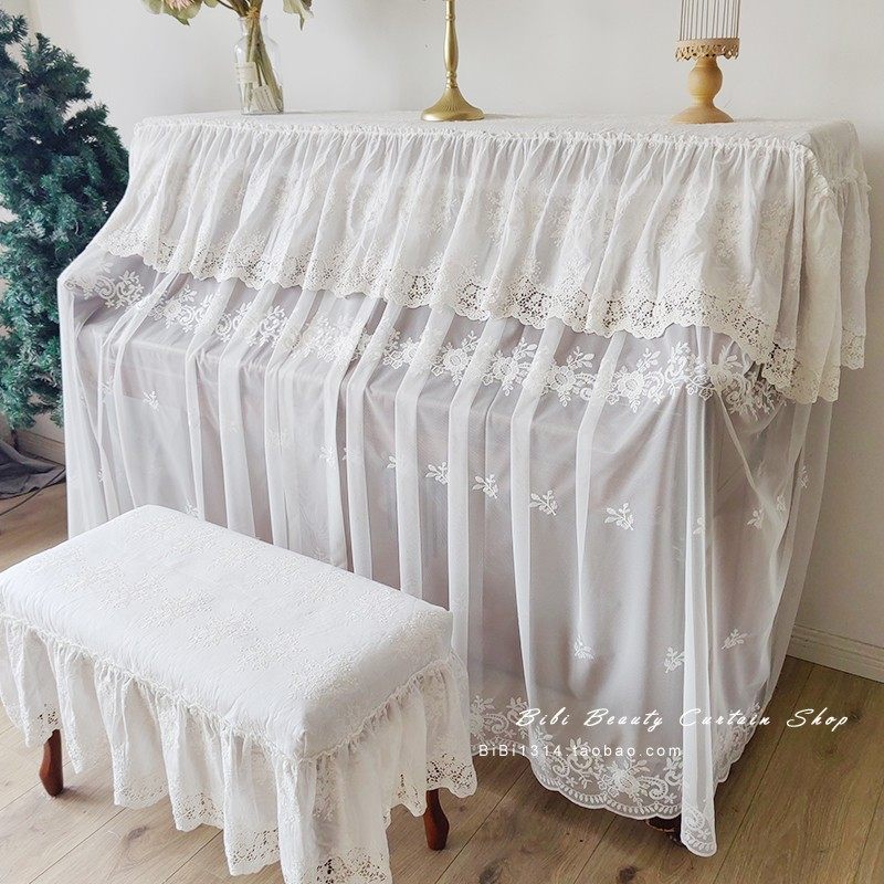 马小萌新品白色法式镂空水溶棉布防尘立式钢琴罩半罩全罩随意切换
