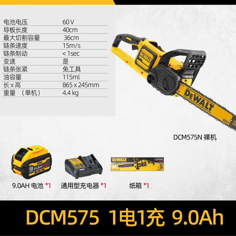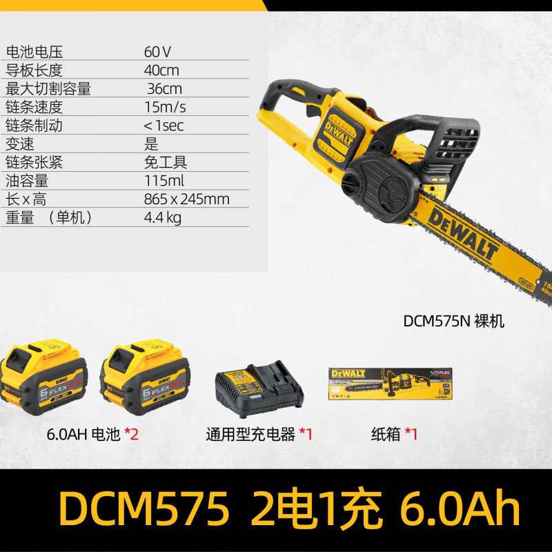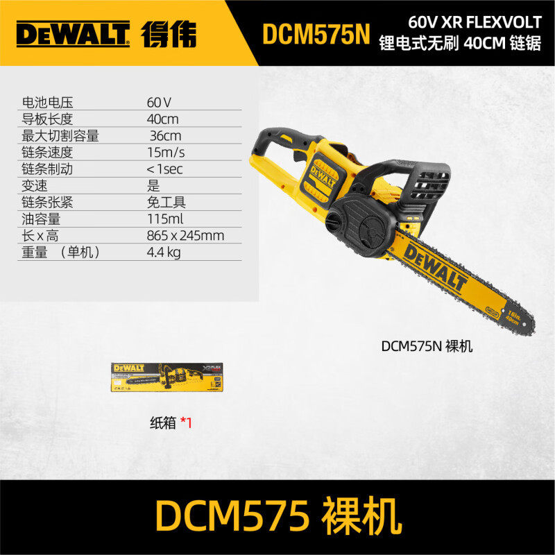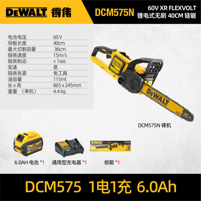 得伟(DEWALT)16寸40cm充电锂电池60V无刷伐木锯链锯便携式户外
