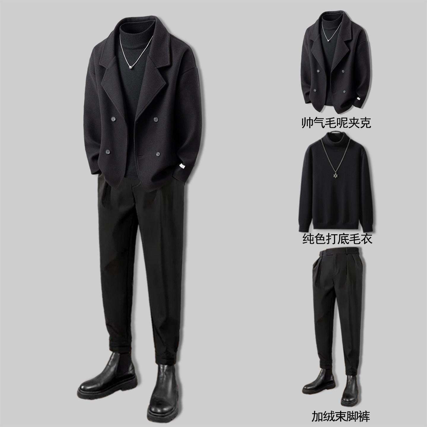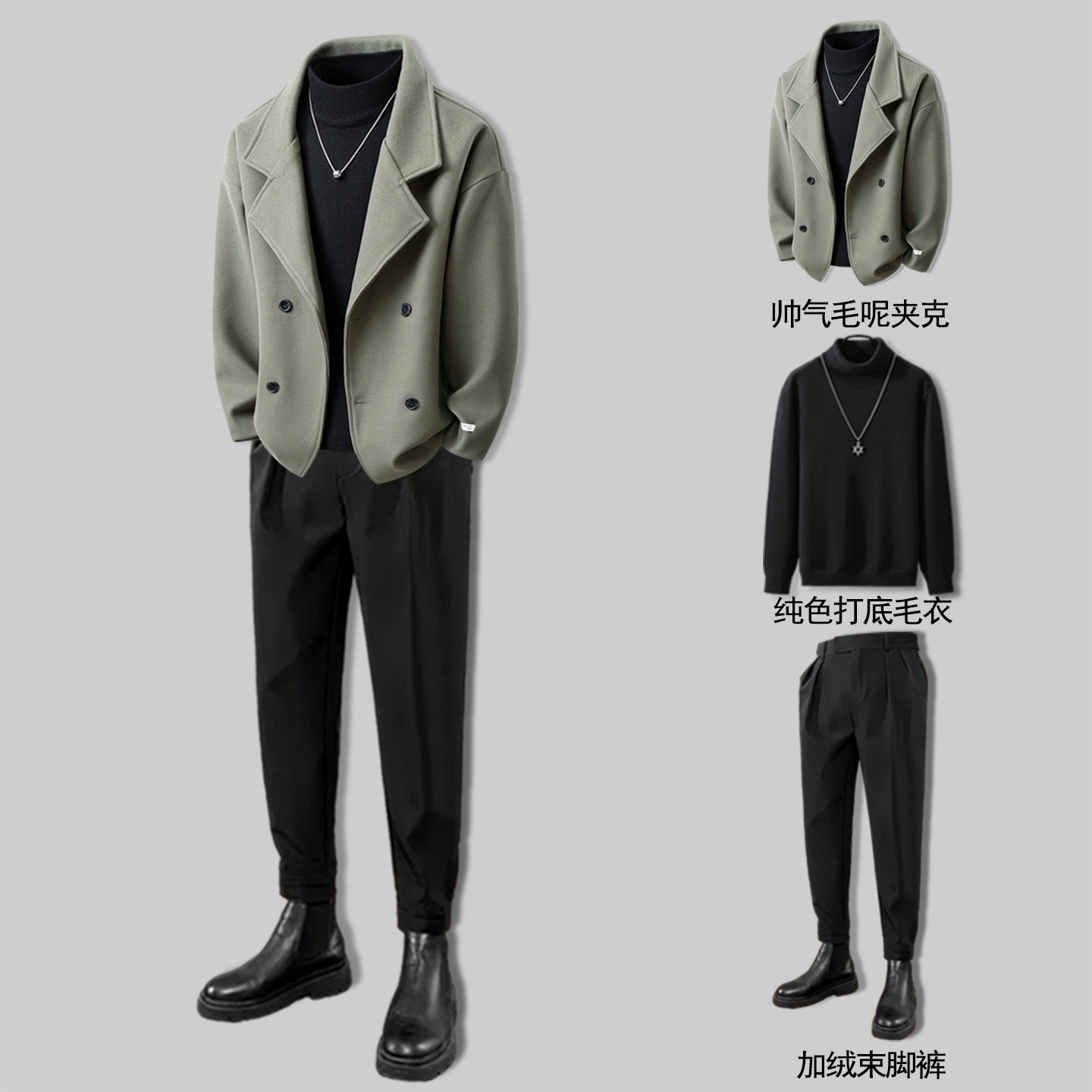 毛呢夹克男短款秋冬高级感痞帅西装领呢子外套男士冬装搭配一整套