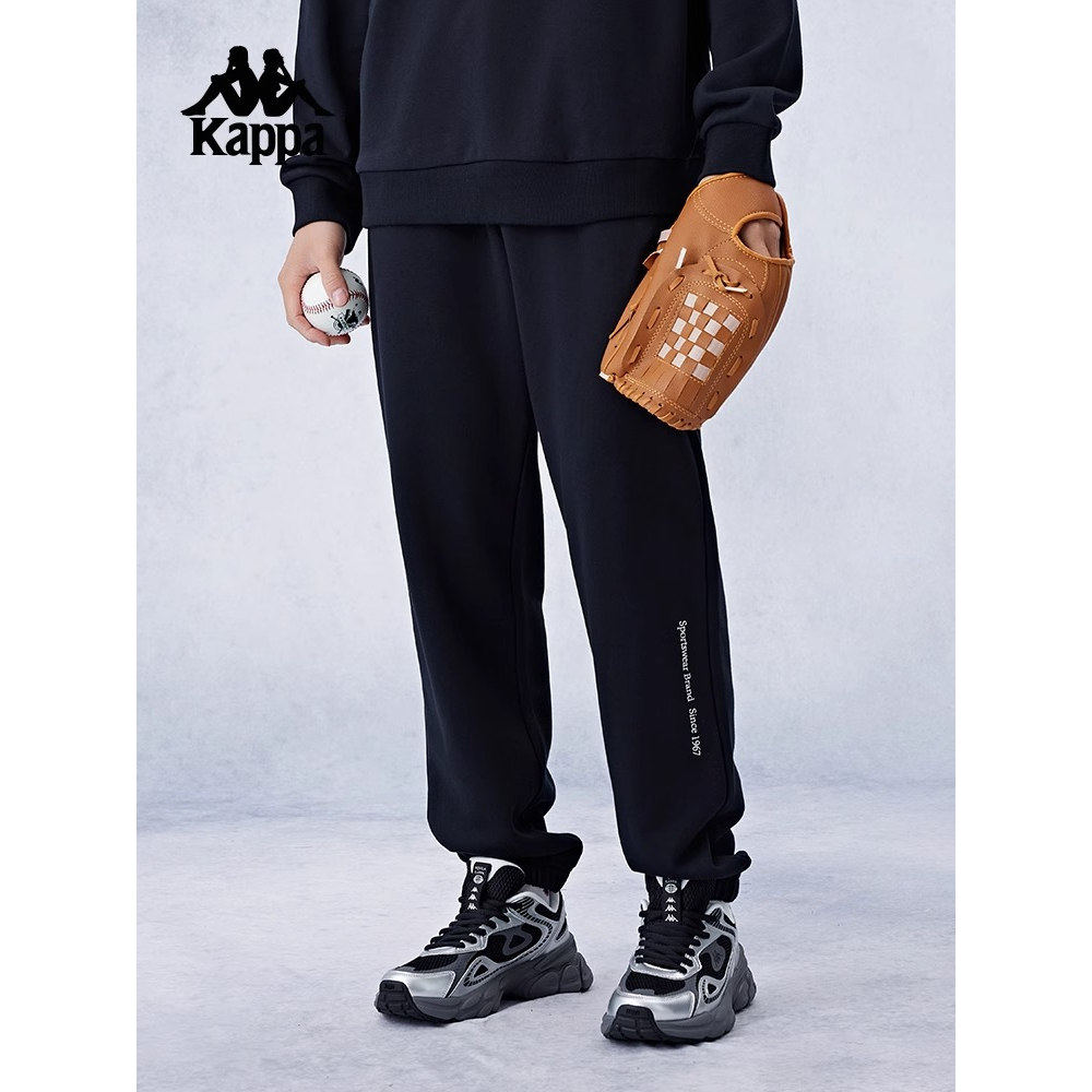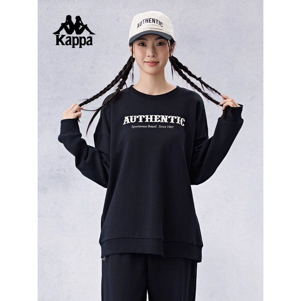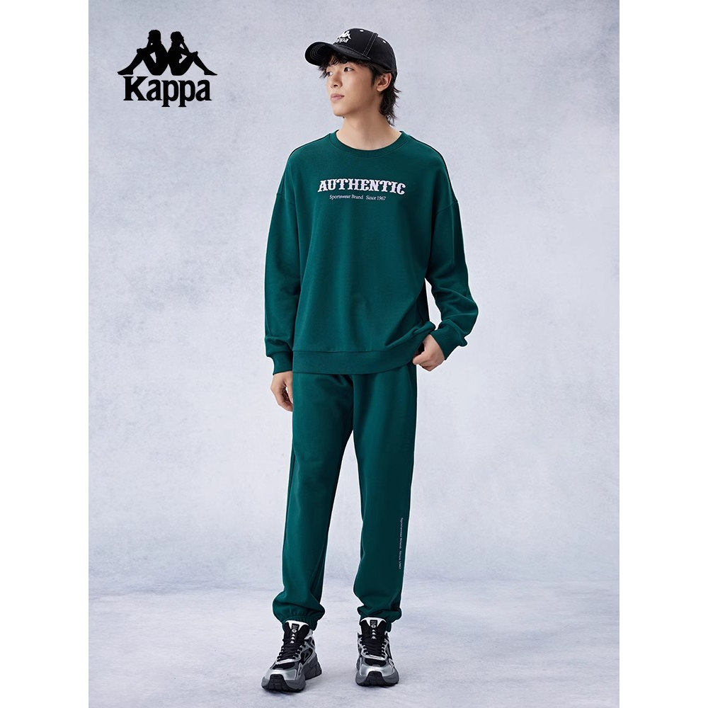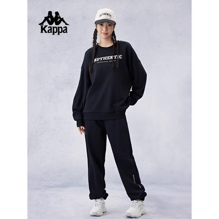 Kappa卡帕背靠背春秋圆领长袖卫衣小脚卫裤女针织跑步运动套装男
