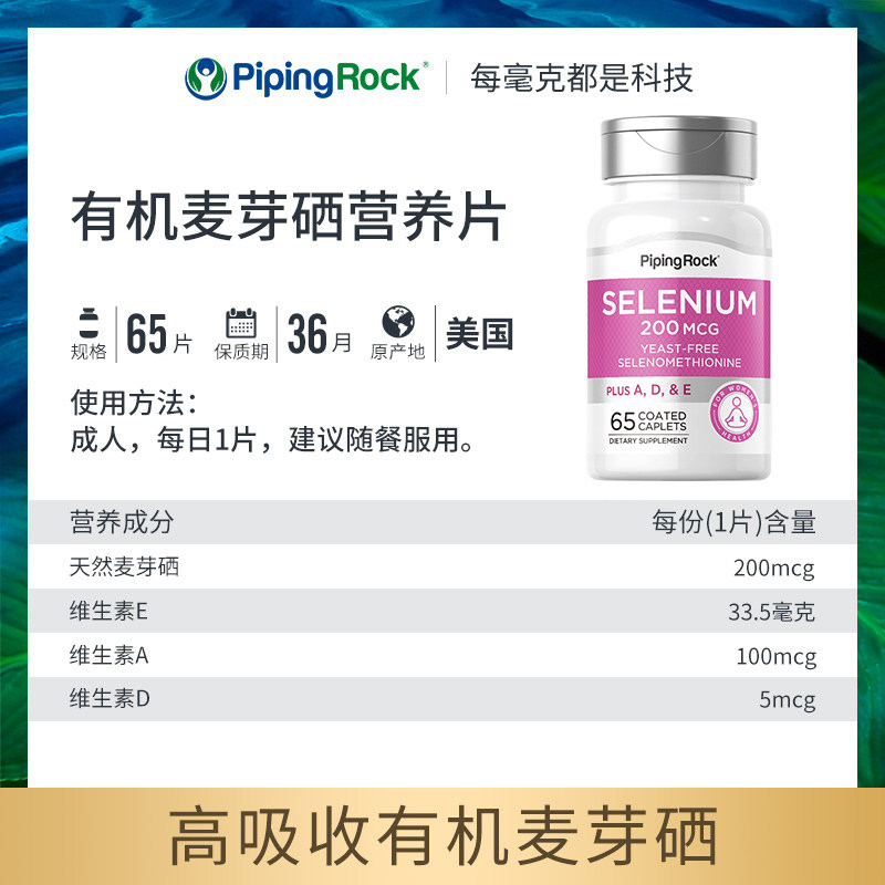 美国朴诺麦芽硒女性免疫力硒片补硒富硒片硒元素有机硒美国正品