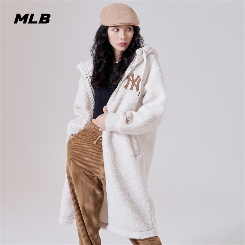 MLB官方 男女长款情侣连帽时尚休闲外套保暖仿羊羔绒秋冬JPF28