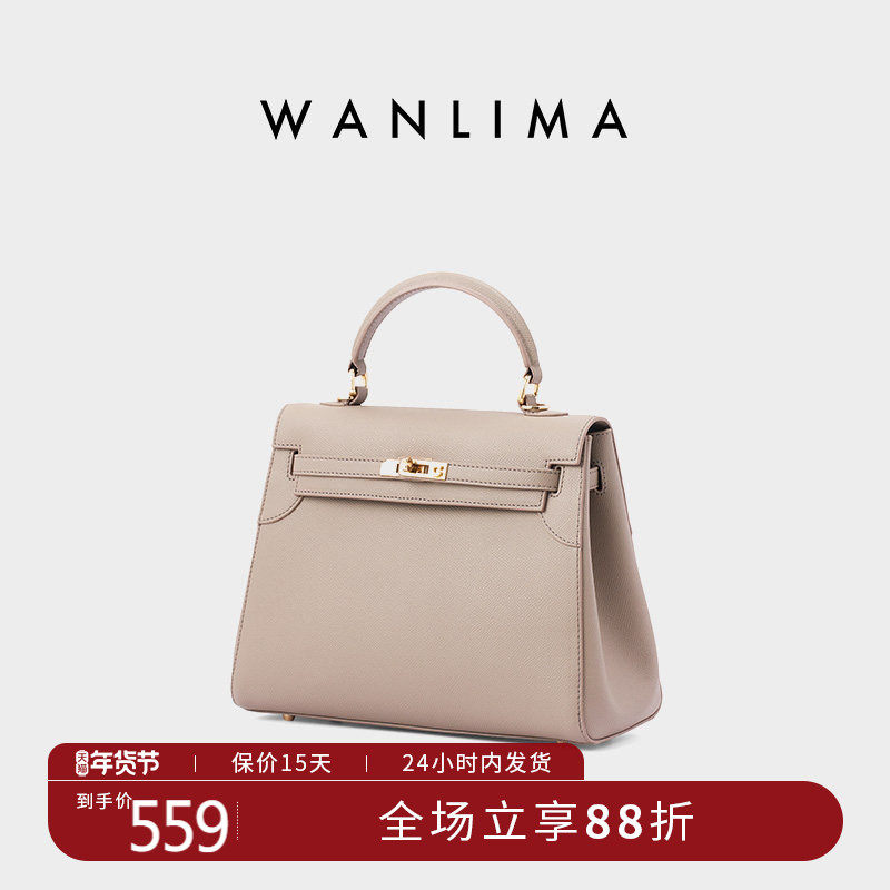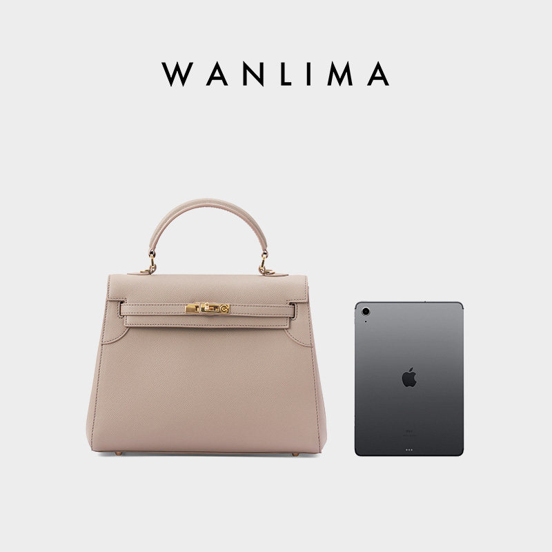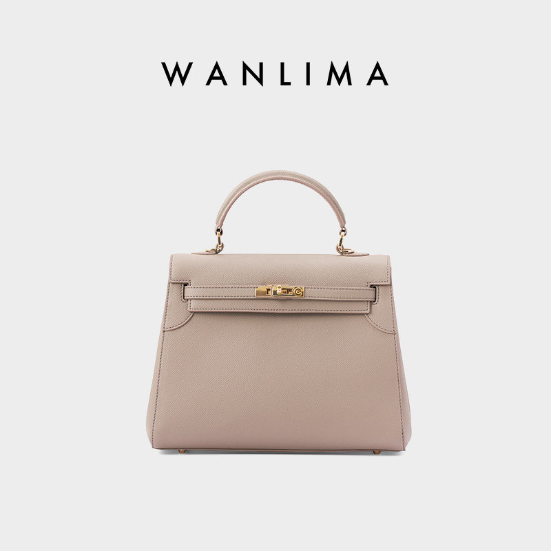 万里马英伦风正梯形单肩斜挎手提包牛皮女士简约女包硬包单肩包