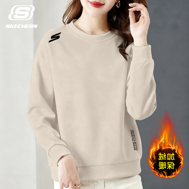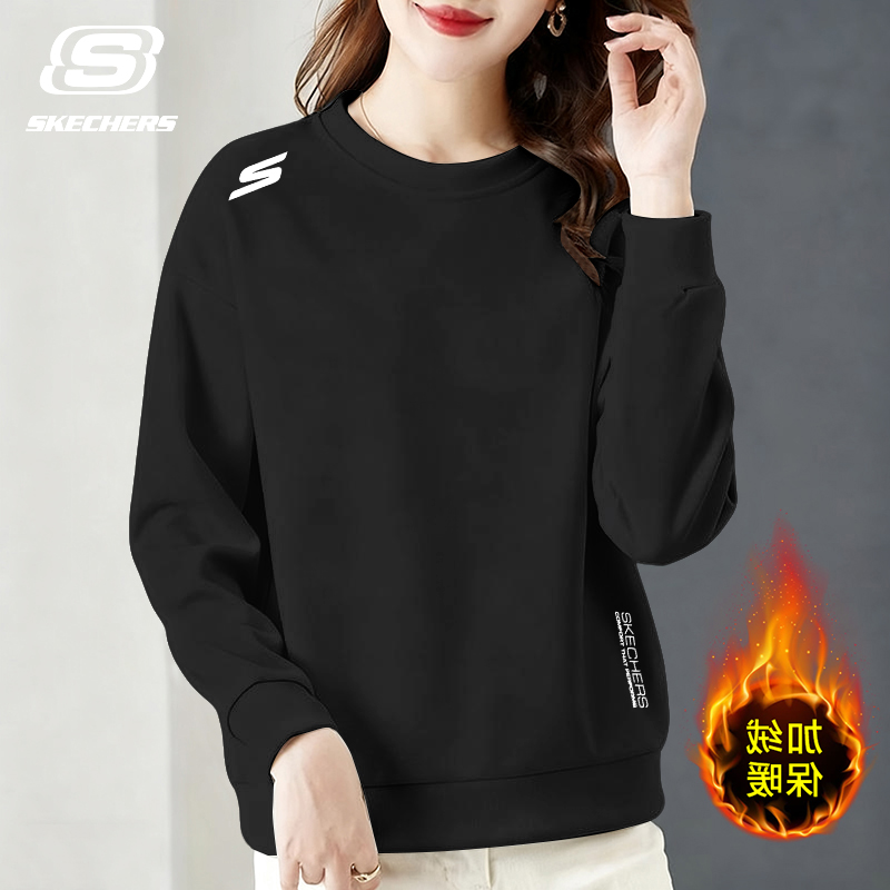 斯凯奇加绒卫衣女2025秋冬季新款显瘦气质上衣休闲保暖女装运动服
