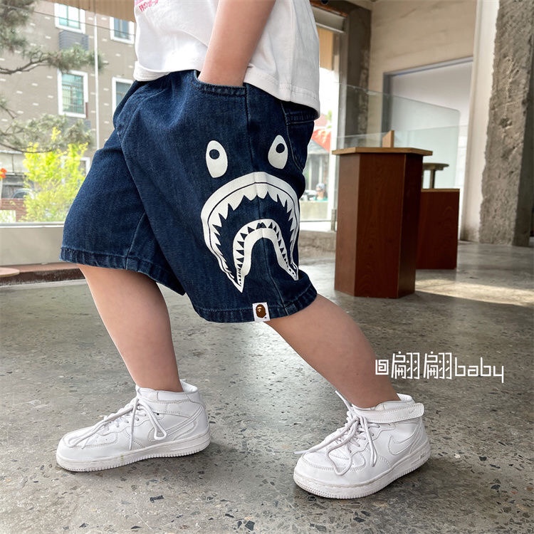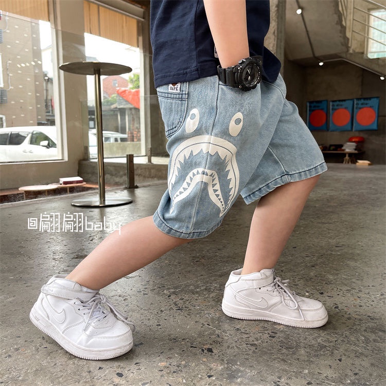 ins男童潮牌日系鲨鱼印花短裤夏季新款宝宝休闲宽松五分牛仔裤子